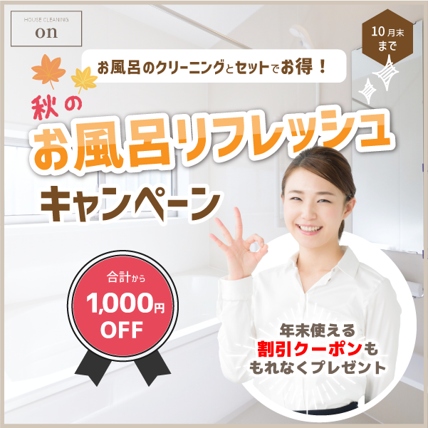ハウスクリーニングのオンでは、秋のお風呂リフレッシュキャンペーン中!!