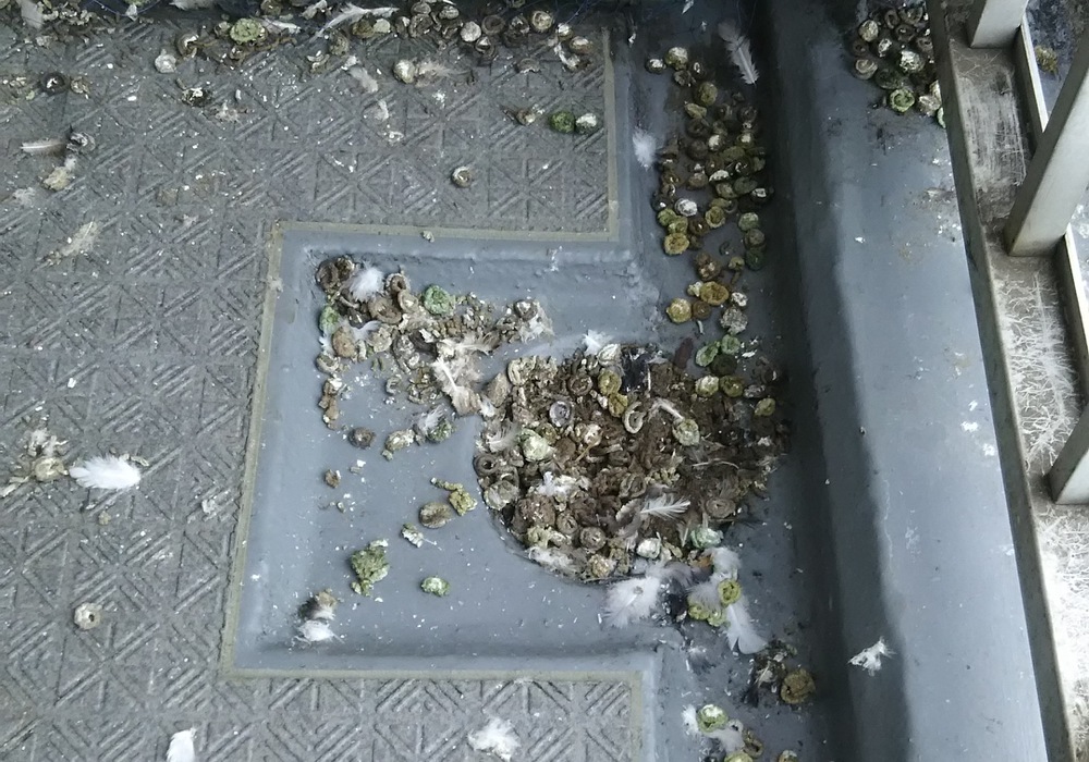 外に出ている箇所だから、なかなか掃除が行き届かない部分ではありますが、鳩の糞も…となると一気に掃除する気力を失ってしまいますよね…。