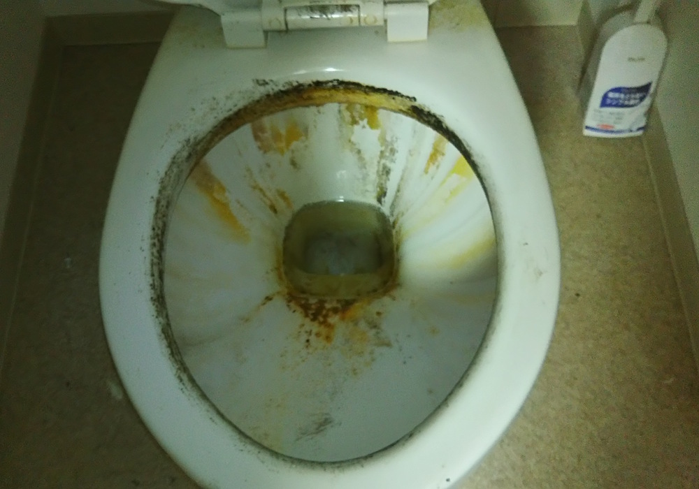 気づいたら写真のように(ここまでひどくなることは稀だと思いますが…!)尿石やカビなどがこびりついてしまって自分ではどうしようもなくなります!