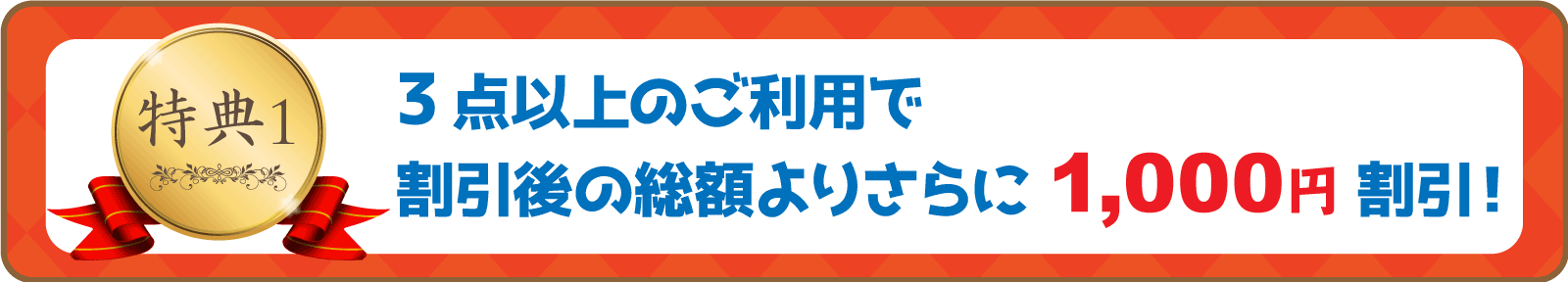※3点以上のご利用の場合、表記の金額よりさらに1,000円割引となります。
