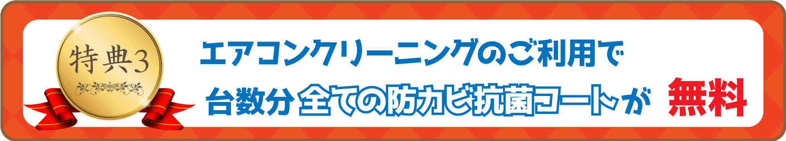 ※ 防カビ抗菌コート無料特典は家庭用壁掛けエアコンクリーニングをご利用の場合のみ適用となります。