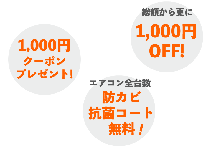 ③ エアコンクリーニングのご利用の全台数「防カビ抗菌コート」が無料!