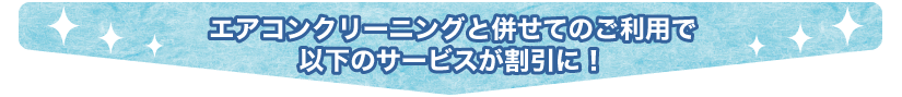 ※ エアコンクリーニング(室内機)をご利用の場合のみ、その他のサービス(防カビ・抗菌コート、水まわり)も割引になります。