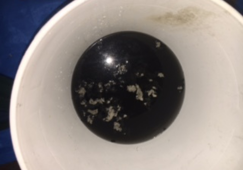 クリーニング後の汚水はこんなに真っ黒!もちろん、清掃で出た汚水は持ち帰って処理します!