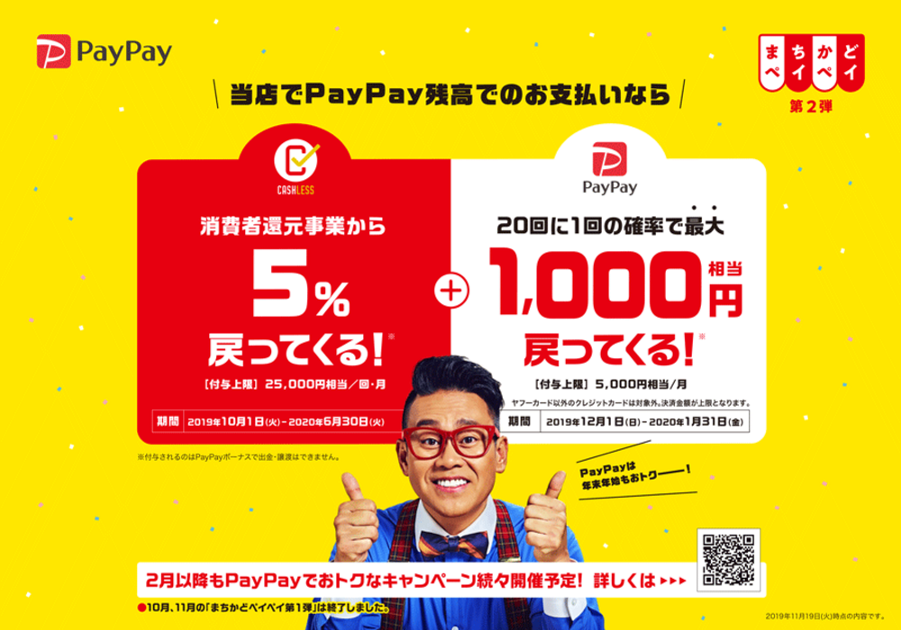 PayPay残高でのお支払いなら最大5%還元!